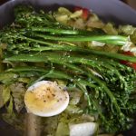 Broccolini Salad with egg, tomato and red pepper is a great lunch or light dinner this time of year! Cooked for just a few minutes, broccolini is the main star here with cherry tomatoes, lettuce, egg, a crisp red pepper and a light lemon vinaigrette.